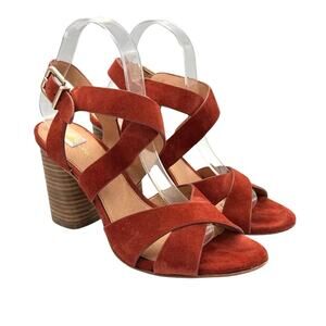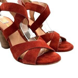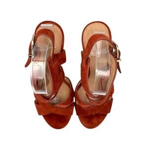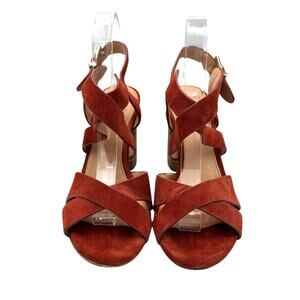 Antonio Melani Pellham Rust Suede Leather Criss Cross Block Heel Strappy Sandals