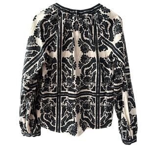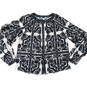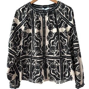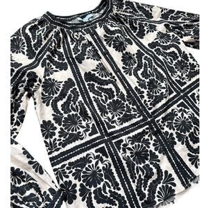 Antonio Melani Preppy Button Front Hartley Printed Top Black & Cream Size Medium