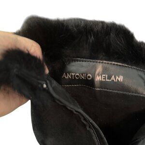 Antonio Melani Rabbit Fur Black Suede Leather Heel Boots Women's Shoes, Size 6M