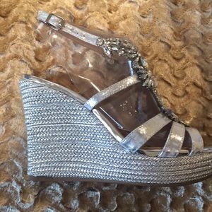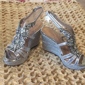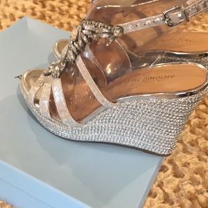 Silver rhinestone wedges from Antonio Melani worn once. Size 7 1/2. Comfortable. Style Reena.