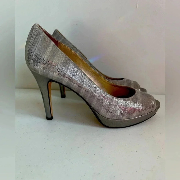 Antonio Melani SZ 7M Silver Platform Peep toe Heel Shoes EUC!