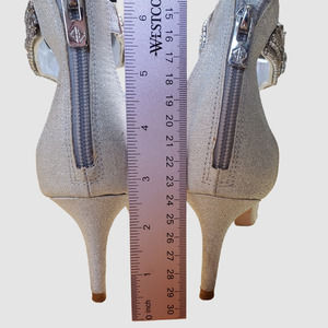 Antonio Melani Silver Bejeweled Heels--perfect for wedding, night on the town, special date, you name it! Great condition!