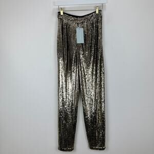 Antonio Melani Sequined Geri Pants High Waisted Straight Party Gold US 0 NWT.