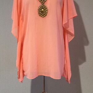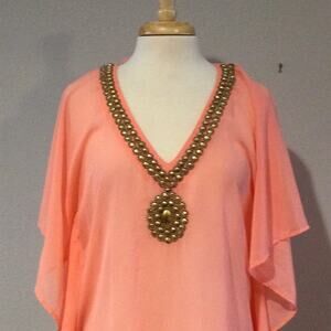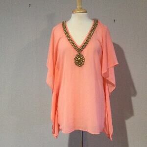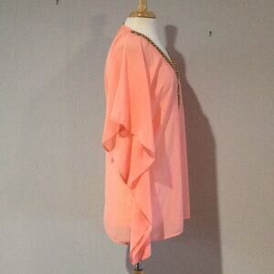 Antonio Melani Sheer Pink Beaded Neckline Flutter Sleeve Blouse Size Small