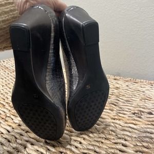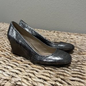 Antonio Melani Shoes Women 7.5 Silver Claire Leather High Heel Platform Wedge.