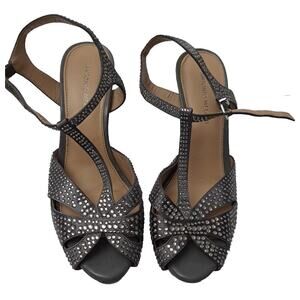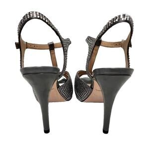 Antonio Melani Silver Rhinestone Peep Toe Strap Heels Pumps Stilettos – Size 10 M