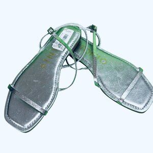Antonio Melani Silver Strappy Flat Sandals | Metallic Minimalist | Size 9.5 NEW