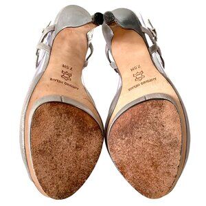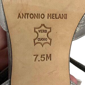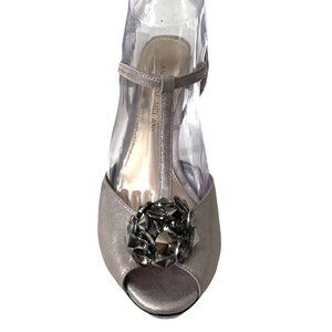 Antonio Melani Silver T-Strap Heels Gem Embellished Peep Toe 7.5 Formal Shoes