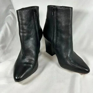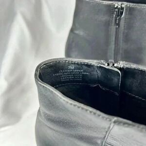 Antonio Melani Size 7 Black Leather Ankle Boot Wedge Heel Gold
