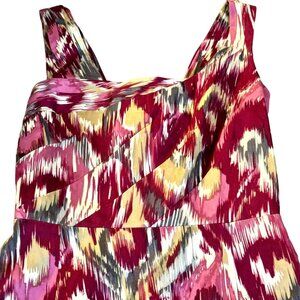 This stunning Antonio Melani sheath dress features a vibrant multicolor ikat print. With a sleeveless design and a flattering fit, this dress is perfect for various occasions. Made from a blend of cotton and spandex, it offers comfort and style. Ideal for both casual and formal events, this dress is sure to turn heads.
