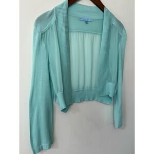 Antonio Melani Sweater Womens Green Size M Cardigan Cropped Sheer Silk Blend