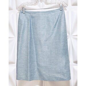 Excellent condition. 2 piece set! Tencel/linen/metallic. Gorgeous blue with an overall metallic thread shimmer. Both pieces are a size 4 and both are fully lined. Skirt has a back zip closure. Jacket has lightly padded shoulders and 3/4 sleeves. Gorgeous ruched detail. WITH pockets! SUPER RARE and IMPOSSIBLE to find ANYWHERE! Lovely!