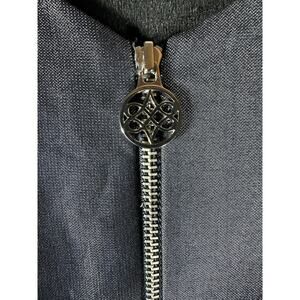 DETAILS: Lined, back zip closure, back slit, polyester-no stretch, color: metallic gray/blue