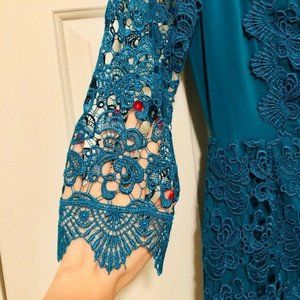 Antonio Melani Teal Kinga Floral Lace Dress 3/4