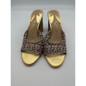 Antonio Melani The Nat Note Rainbow Metallic Mule Heeled Sandals NEW