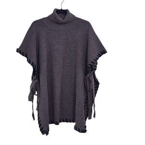 Antonio Melani wool blend gray & black side tie turtle neck poncho 30" wide