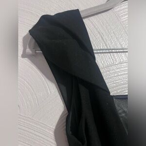This is a stylish Antonio Melani sheath dress in size 0 with a square neckline and cap sleeves. The dress features a black color with leather panel accents, adding an edgy and sexy touch. It is made of a blend of polyester, spandex, and leather, and is designed for a career or casual occasion. The dress is lined, has a zipper closure, and falls at a midi length, making it a versatile piece for summer, fall, or spring wear. Perfect for those looking for a minimalist and classic LBD with a powerful and chic flair.