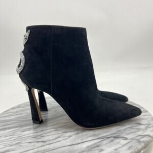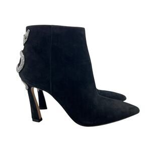 Antonio Melani Womens 7 Booties Black Suede Grayce Stiletto Rhinestone Snake