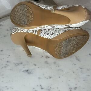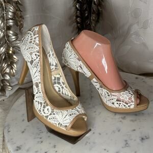 Antonio Melani | Women’s 7.5 | Cream Lace Peep-Toe Heels | Bridal Boho Chic
