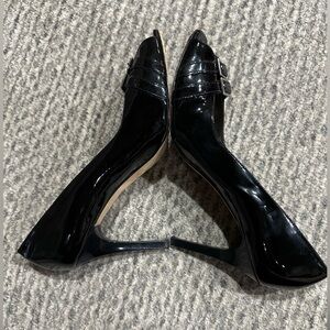 Antonio Melani Womens Black Patent Leather Peep Toe Heels Buckle, 8.5M