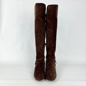 Antonio Melani Womens Brown Suede Tall Over the Knee Boots Buckle OTK size 5.5