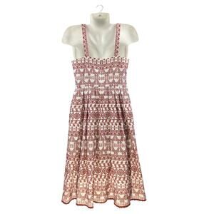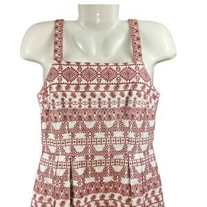 Antonio Melani Women's White w/ Rust Red Stitching Midi Dress Lined Pockets SZ 4