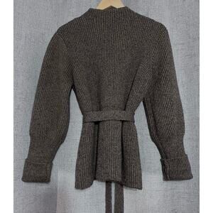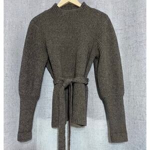 Antonio Melani XL Green Brown Puff Sleeve Rib Knit Waist Tie Bow