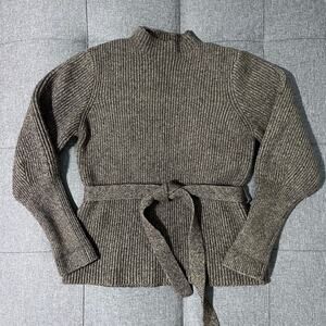 Antonio Melani XL Brown Fleck Puff Sleeve Rib Knit Waist Tie Bow