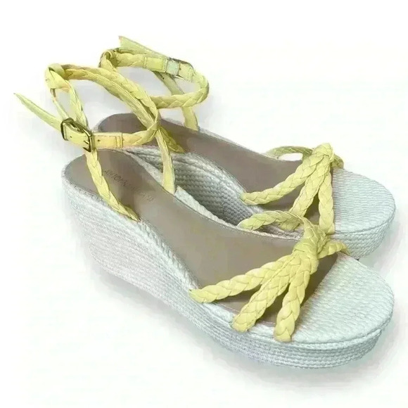 Antonio Melani Yellow Braided Leather Stacked Wedge Sandals 9.5