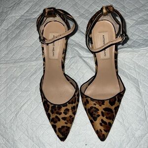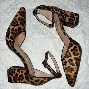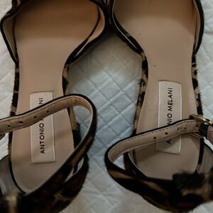 Antonio Melani animal print calf hair pointed toe block heel ankle strap shoes 8