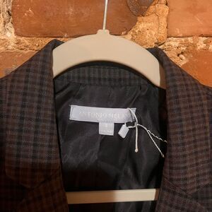 Antonio Melani black brown navy plaid single button blazer - size 8