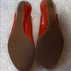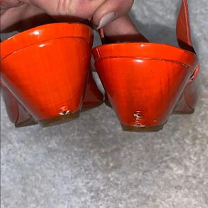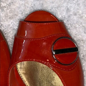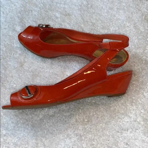 Antonio Melani Ladies orange patent leather peep toe Slingback shoes. Size is 8.5