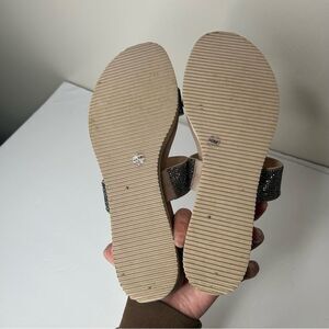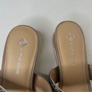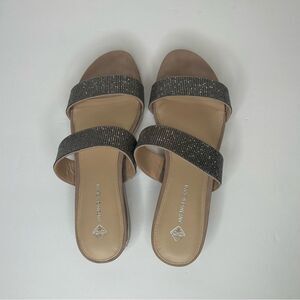 Antonio Melani silver & tan rhinestone bedazzled Slip-On Sandals 10