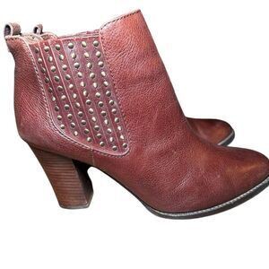 Antonio Melani size 8.5 studded brown leather ankle boots. Pre_ loved condition