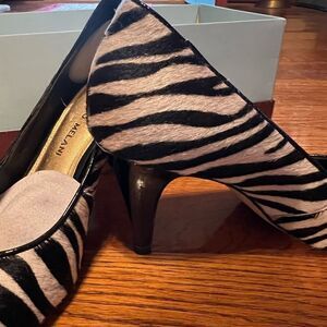 Antonio Melani size 5 1/2 zebra faux fur and patent leather heels