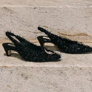 Antonio Melani x Elizabeth Damrich Moon Boucle Frayed Detail Slingback Pumps 6M