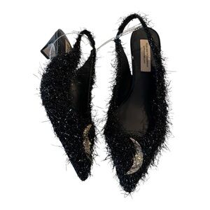 Celestial Shoes Moon Shoes Slingback Black Funky Fun ornamented unique witchy Witchycore Halloween Unique Fun Celestial Crescent Moon Cosplay