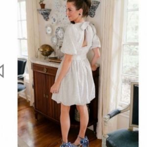 Antonio Melani x Nicola Bathie Emily Metallic Jacquard Short Sleeve Mini Dress