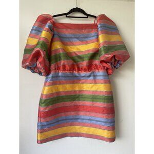 Antonio Melani x The Nat Note Nell Striped Jacquard Puff Sleeve Mini Dress Multicolor Size 14