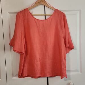 Antonio Melanie Women's Coral 100% Linen Bell 1/2 Sleeve Top Size LG NWT Luxury