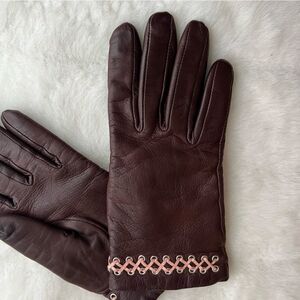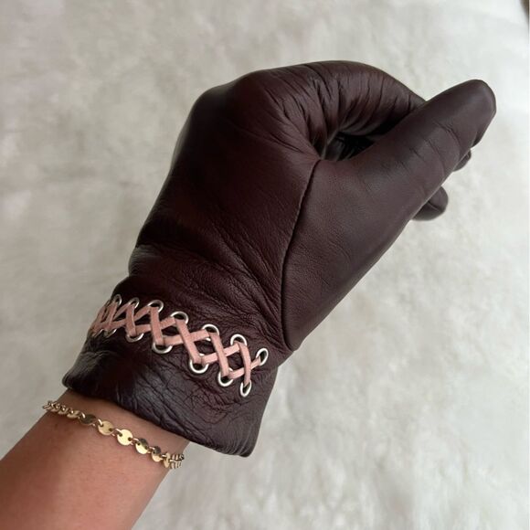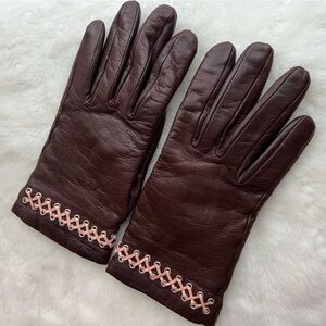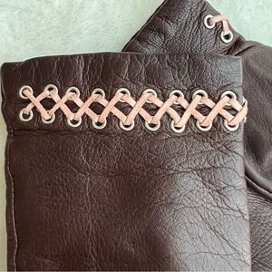 Antonio Murolo Women's Leather Driving Gloves Brown w/Pink Stitching Size 7 1/2