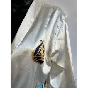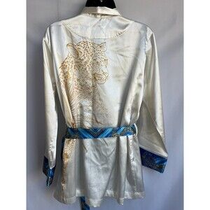 Antonio Stefano Cream White Satin Robe Size M Gold Blue Novelty Leopard Print