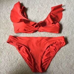 Chic swimwear in a bold red hue. Ideal for sunny getaways.
