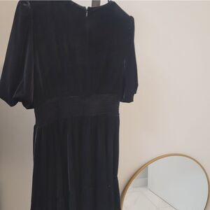 The Antonio Melani Thelma Dress in black is a sophisticated and versatile piece, perfect for various occasions. Crafted from luxurious velvet, this dress features elegant design elements that enhance its timeless appeal.