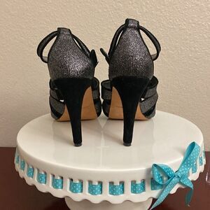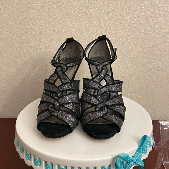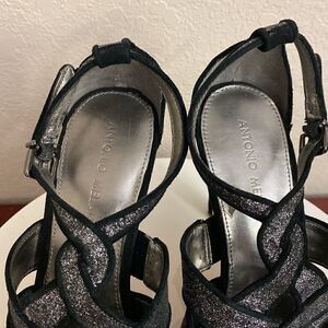 Antonio Melani black/grafite sparkly high heel sandals ankle strap 9M