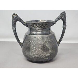 Antq Charles Rogers Triple Plate Silver Cream/Sugar Ornate Handles/Floral Engrav