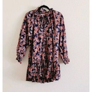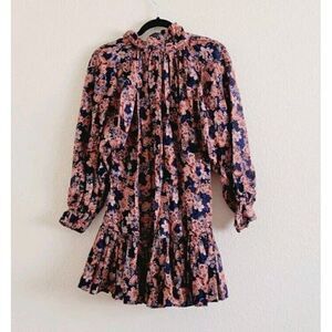 Antropologie Sundry Oceana Floral Boho Dress Long Sleeve Tiered Cotton Size 0/XS