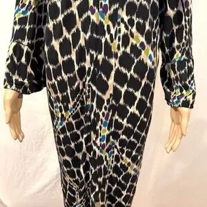 Anthony Original Robe Womens 14 Black White Abstract Print Calf Length Has random Blue and lime green spots