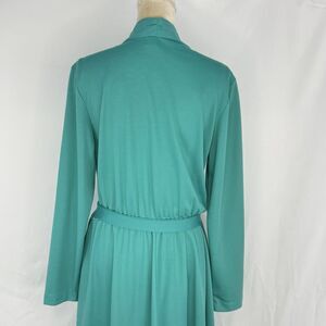 Antthony Richards Women Green Midi Dress V Neck Tie Waist Size 12 Long Sleeves