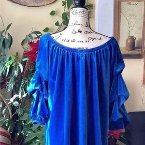 NWT Antthony Stretch Velvet Top with Puff Sleeve Elastic On and Off Shoulder Loose fit Top Large Goth